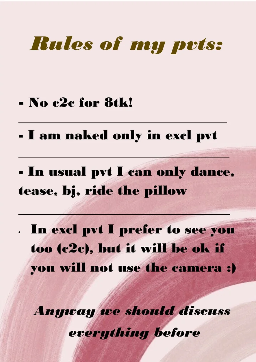 Ahegao, Cameltoe, Talons, Fessée, Fétichisme des pieds, Twerk, Doggy style, Amazone, Tittyfuck, Seins nus, Évaluation de bites, Ride dildo (30tk extra), put Lush on clit, Oil on tits, oil on ass, Dildo in missionary pose, Dance érotique, Masturbation, Strip-tease, Gorge profonde